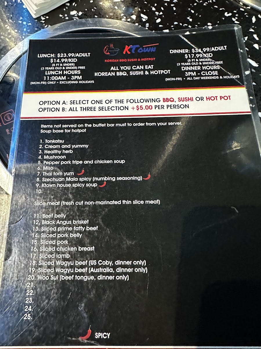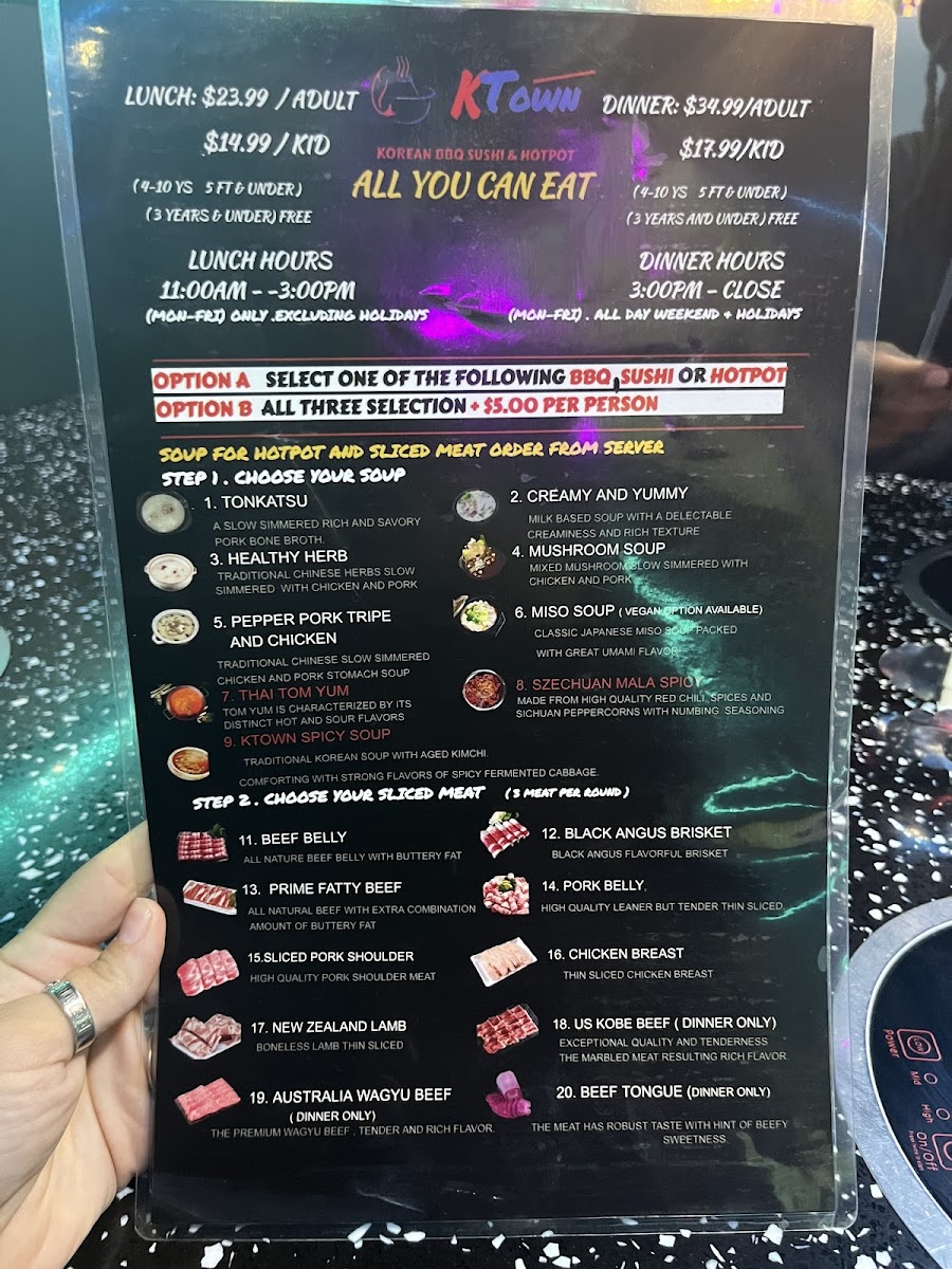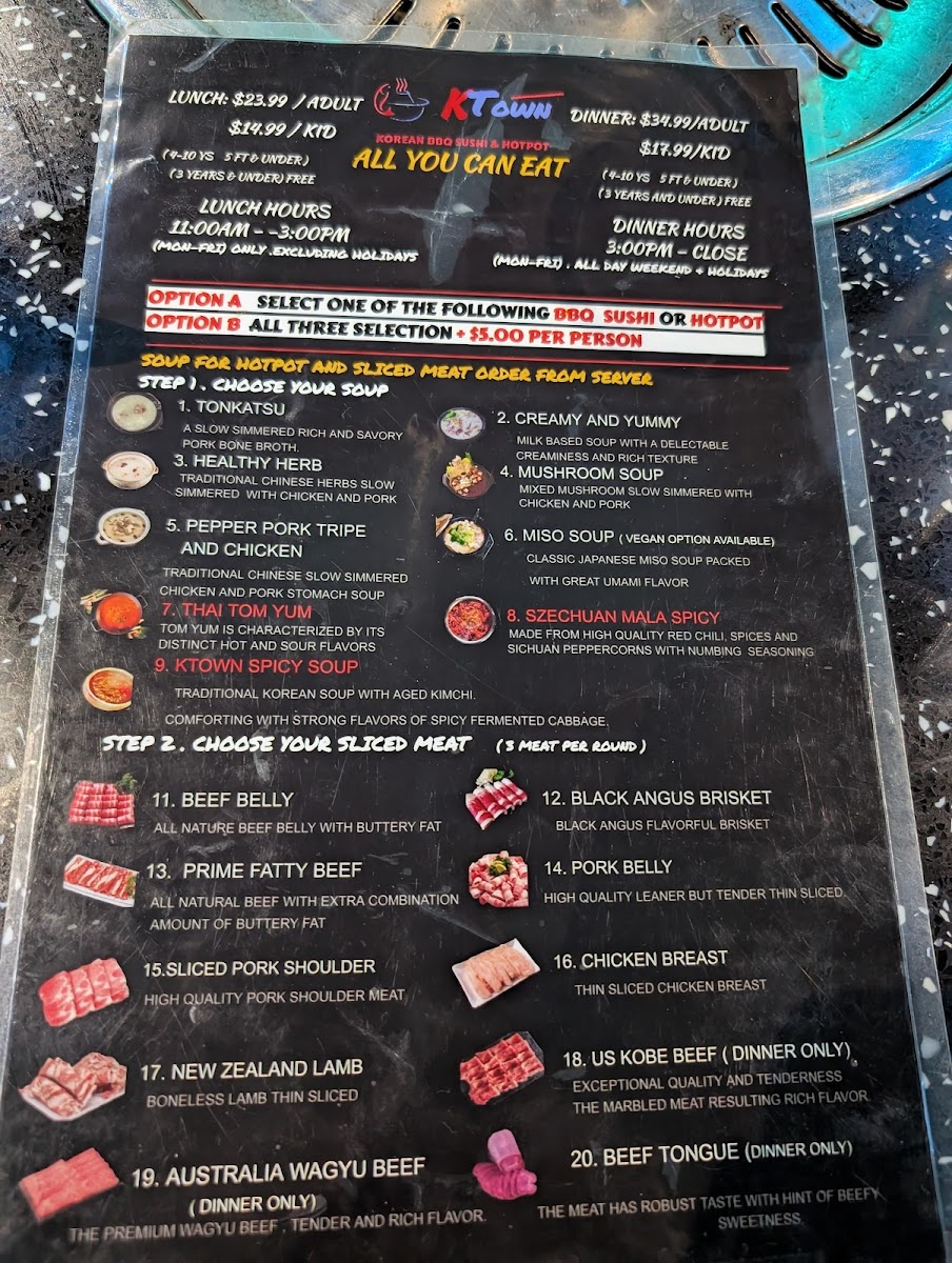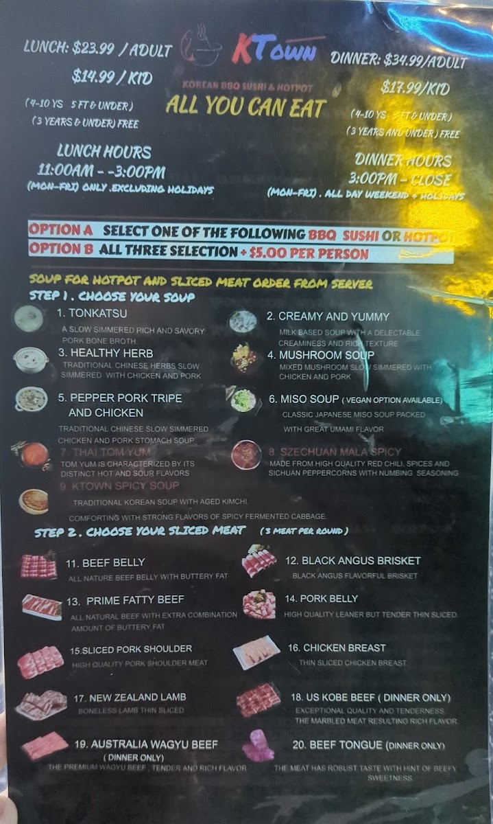 As you step inside, the modern and inviting atmosphere envelops you, setting the stage for an unforgettable dining adventure. The interior is thoughtfully designed, creating a welcoming ambiance that encourages camaraderie and shared meals. If you’re here for the food—and who isn’t?—you'll be pleased to know that Ktown offers an all-you-can-eat experience that ensures freshness and variety at an exceptional value.