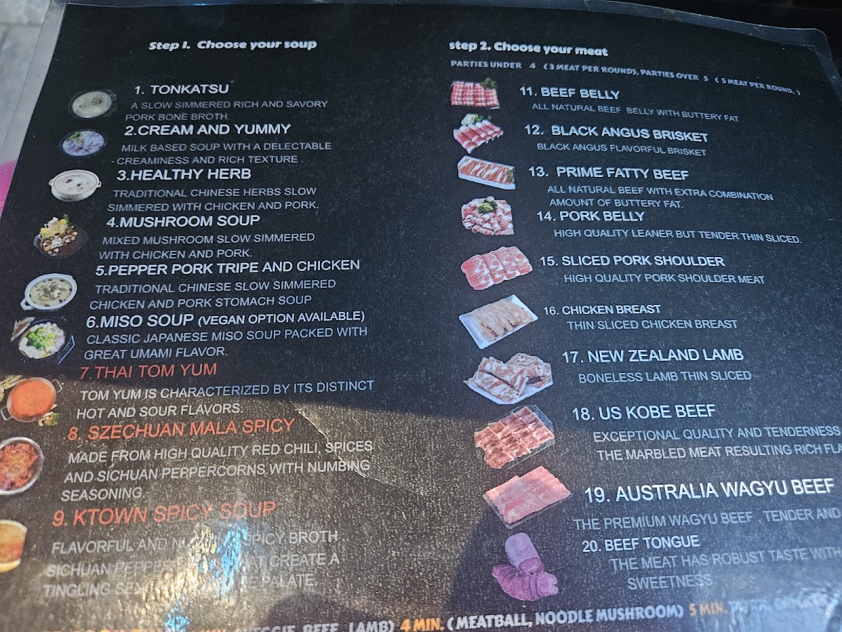 Embark on a flavor journey as you explore their extensive menu—start off with the succulent range of sliced meats, including decadent choices like Kobe, Wagyu, and fatty beef that are sure to tantalize your taste buds. The buffet-style selection lets you walk up and choose from a plethora of flavors, including delightful seafood options like shrimp and oysters. A standout favorite among patrons is the Tom Yum soup, which boasts a perfect balance of heat and tanginess that complements any meal beautifully.